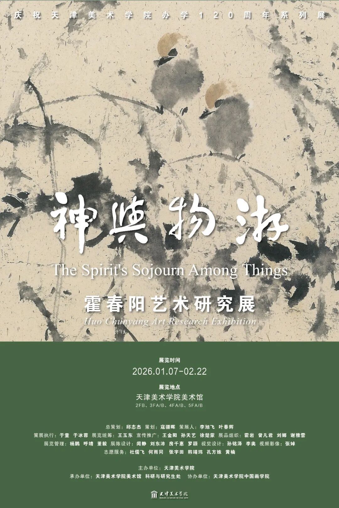 由天津美术学院主办,天津美术学院美术馆、科研与研究生处承办,中国画学院协办的《神与物游——霍春阳艺术研究展》将于2026年1月7日下午14时在美院美术馆开幕。
