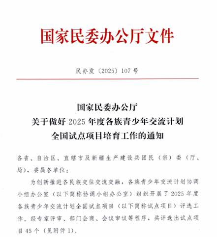 近日,从国家民委获悉,我校中国画学院申报的《助力新疆策勒青少年汉字规范书写社会美育实践》项目,经国家民委专家评审、部门会商、会议审议等程序,被评选为2025年度各族青少年交流计划全国试点项目。全国共评选出试点项目45个,我校该项目是其中之一。