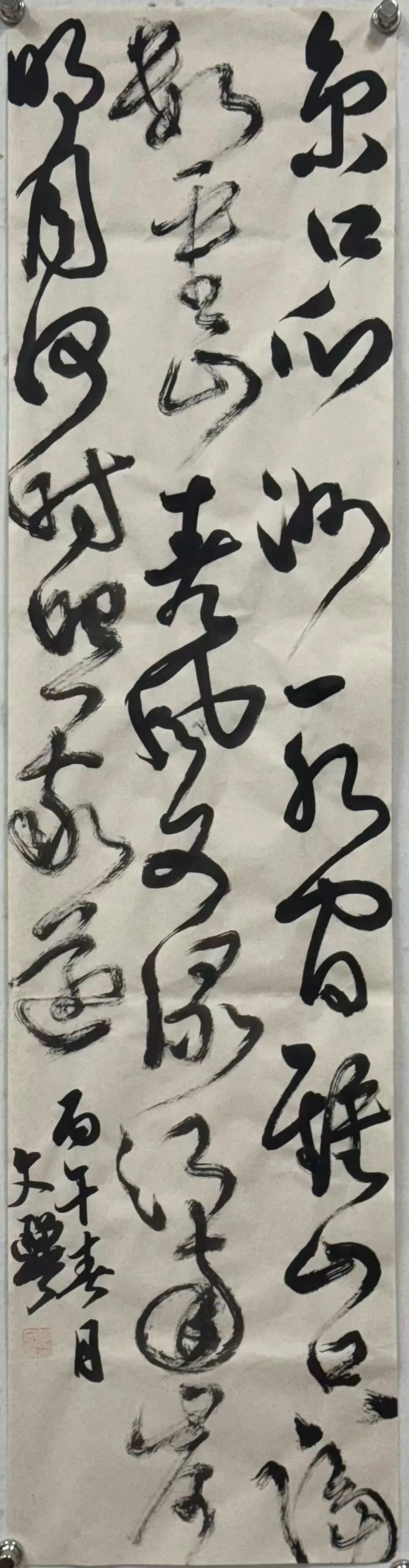 本草书作品取意历代运河诗,化用皮日休咏运河诗句的辩证视角,探讨运河与中华文明的共生关系。以草书“笔断意连”的特质呼应运河历史的复杂性,线条狂放却守法度,恰如运河承载的文明韧性。创作弱化字形辨识度,让笔墨成为情感与哲思载体,借提按顿挫的笔墨追问人们回望运河的深层意义。