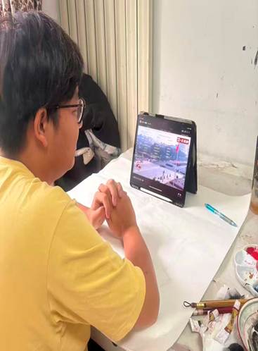 观看阅兵仪式,是对历史的崇高致敬,是对那段艰苦卓绝的抗战历史的深切缅怀。作为中国画学院的学生,我们深知自己不仅是历史的见证者,更是历史的传承者。通过笔尖的流淌,我们能够将这份对先烈的敬仰和对历史的敬畏永久保存,让记忆不会随着时间流逝而褪色。