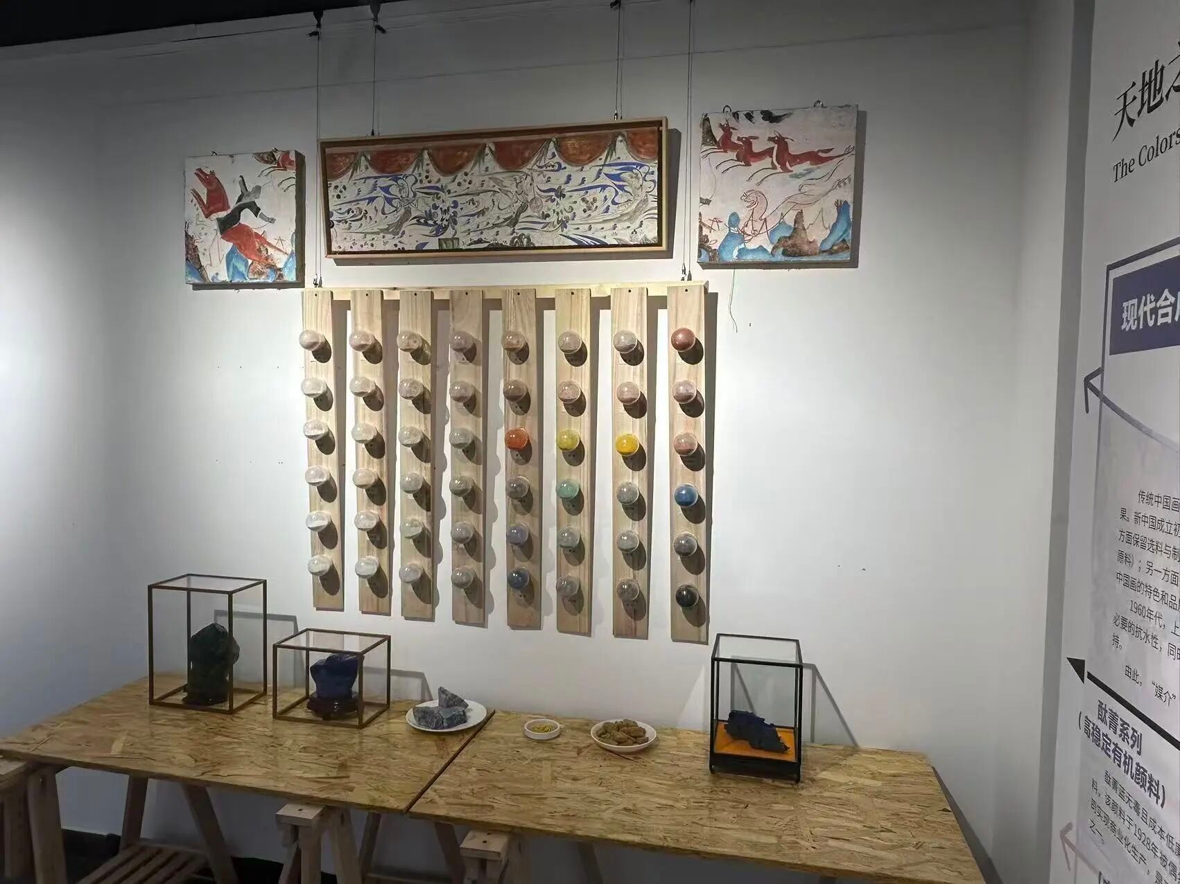 此次展览共设六大板块——“中国颜料的四维溯源”“墨分五色:东方美学的视觉叙事”“观色见心:中国色彩背后的情感与隐喻”“破界重塑:媒介语言的当代转换”“我的东方色彩萌兽”“丹青密码:颜料构成的化学方程式”,力求从矿物学、植物学、化学、医学、心理学等角度展开跨学科对话。