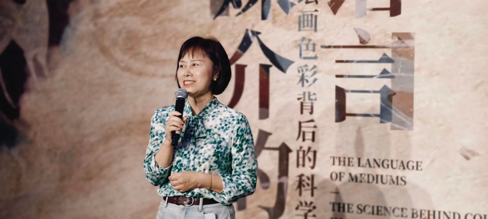 天津美术学院赵粟晖教授介绍了此次展览展出的矿物颜料样本、传统国画色谱分析报告,以及通过现代科技还原的古代颜料制作工艺,让现场观众直观感受到中国绘画色彩的“科技内核”。
