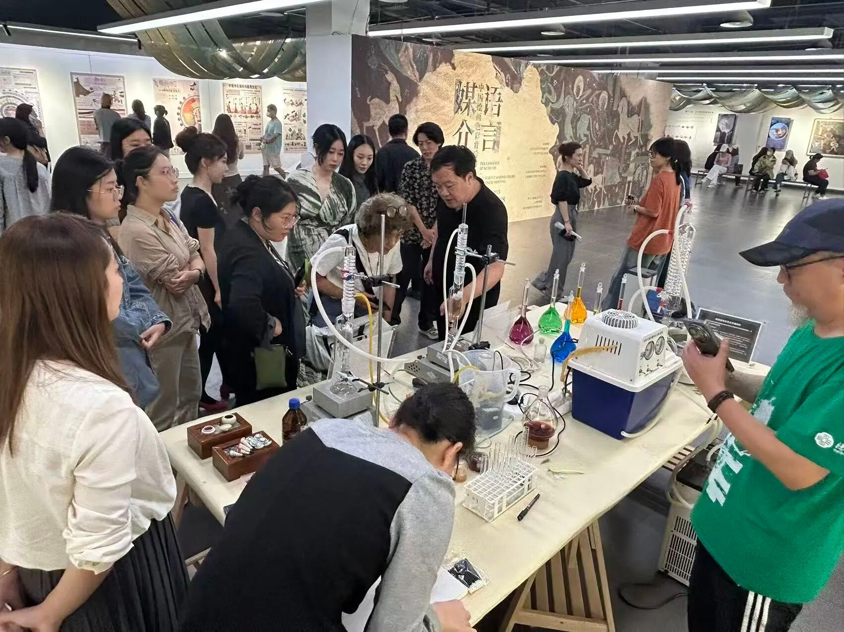 天津美术学院中国画学院与天津美术学院美术馆共同主办的跨学科展览“媒介的语言——中国绘画色彩背后的科学”于2025年9月28日下午16点,在天津美术学院美术馆青年空间开幕。本次展览联合天津师范大学化学科普基地、天津博物馆、天津市河北区教师发展中心等多家单位力量,围绕中国绘画中色彩的科学成分与审美价值进行跨学科研讨对话。