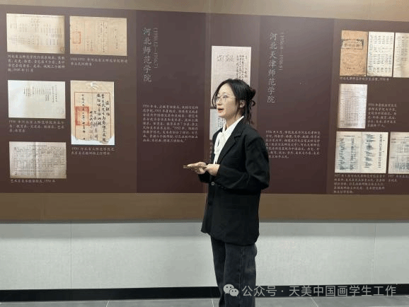 二楼展区详细呈现了学院的发展历程:1906年,北洋女师范学堂创立,此后经过直隶女师等多次更名,于1980年正式定名为天津美术学院。课程体系也随之拓展,涵盖了多学科艺术教育,这一演变过程生动见证了现代美术教育的进步与发展。