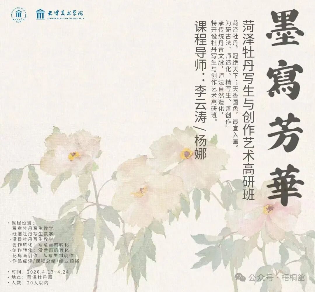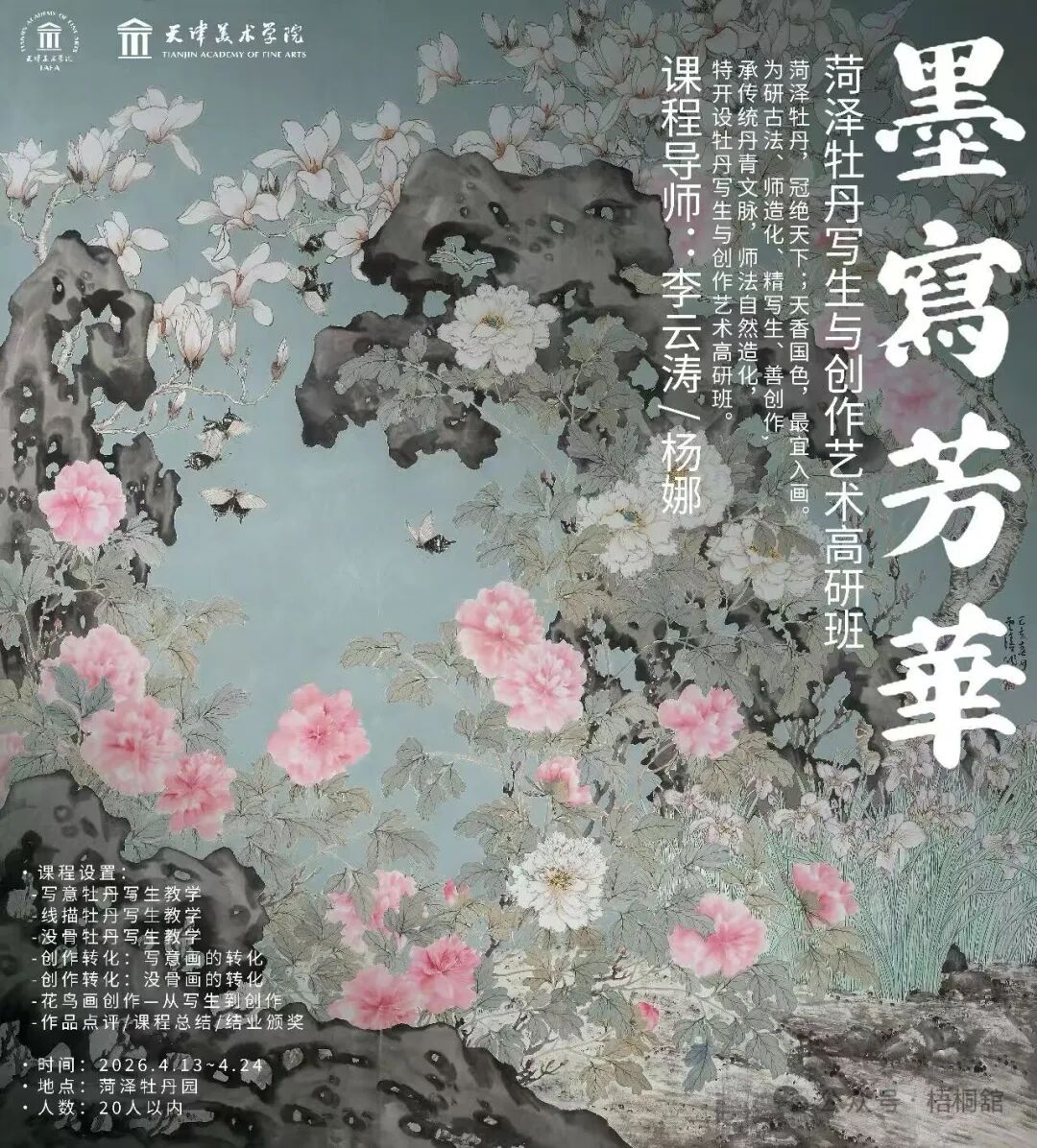 精研牡丹形态神韵,锤炼笔墨线条气韵,明牡丹结构,练写生法度,能独立完成写生稿与创作作品。学制两周,名家亲授,现场观花、对景写生、技法示范、作品点评。诚邀书画同道,共研丹青,以墨写芳华,以笔绘国色。