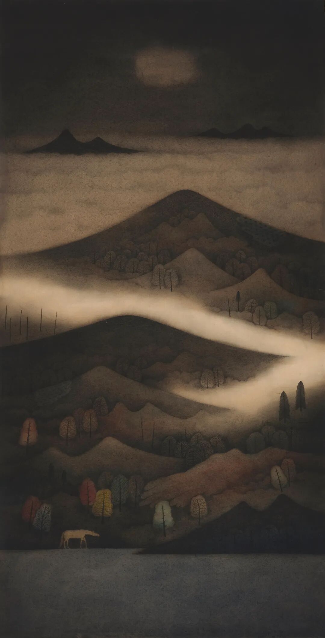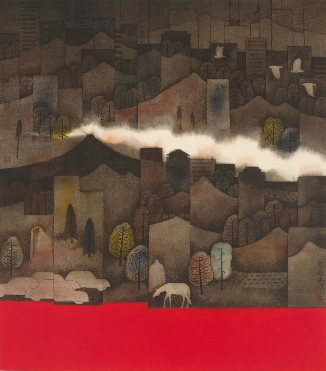 黄红涛是一位善于思考,并在继承传统的基础上勇于创新的画家。在黄红涛的绘画中,虽出现了诸如树木、云山等中国画的传统元素,但是他对这些元素进行了重新组合。在传统的基础之上开拓出了新的语言图式,体现出当下青年艺术家对待传统绘画元素的一种态度,体现了当代艺术家所具备的开创性。值得注意的还有其作品所表现出的朦胧感,这是中国绘画的基本元素,也是一种高境界的表达,更是诗境的体现。此外,黄红涛的作品尤其强调画面中的平面感,在平面中探寻视觉的空间感,这种空间感与西方的透视学有所不同,带有一种东方式的空间逻辑。他的作品让我们看到了传统艺术元素的当代化表现,一位年轻画家能有如此思考实属难得。