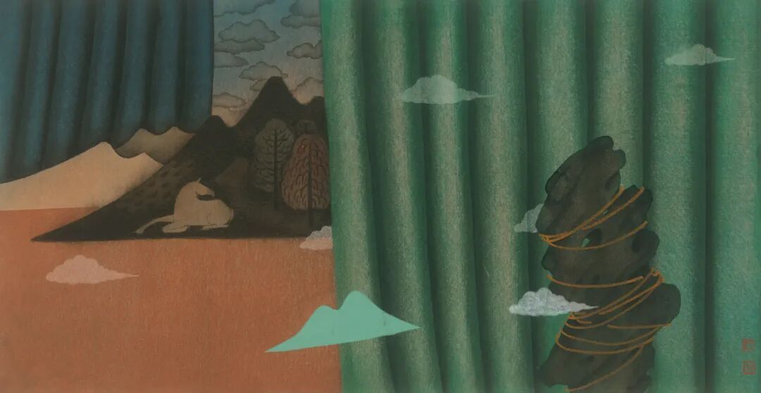 过去的5到10年里,在中国画的大范畴内有一批年轻画家已经发生转向——他们所借用的媒材和描绘对象不再是一个不说话的对象,而是在画面中用它的身份和意义来参与艺术家的表达。例如黄红涛的“红山”,把图像与色彩直接结合,让色彩在叙事中承载意义表述的角色,反映了类似的图像与叙事结构发生的变化。又如黄红涛最新的这批“纱幔”系列作品,画面与被绘制的纱幔,形成了某种物质的隐喻性。但下一步,如何让它继续演进,使它完全摆脱美学意义上的纱幔,成为文化意义上的纱幔?我觉得这既是挑战,也是一种机遇。就像黄红涛所说,随着年龄的增长,他对世界的看法越来越模糊。他为什么会发出这样的感慨?这样的感慨背后有什么?它不一定指向具体事物,而是一个人在成长过程中和世界的认知关系中发生的东西。此次展览展厅以绿色的墙为主,还有一些白色的墙。绿色墙所展现的力量、生命力和白色墙所显现的宁静和冷静,也仿佛一种隐喻,隐喻了黄红涛正站在一个艺术生涯的分岔路口,是走向图像的视觉力量感,还是走向图像的理性反思。就此而言,我觉得这个展览对黄红涛而言,是一个新的开始。