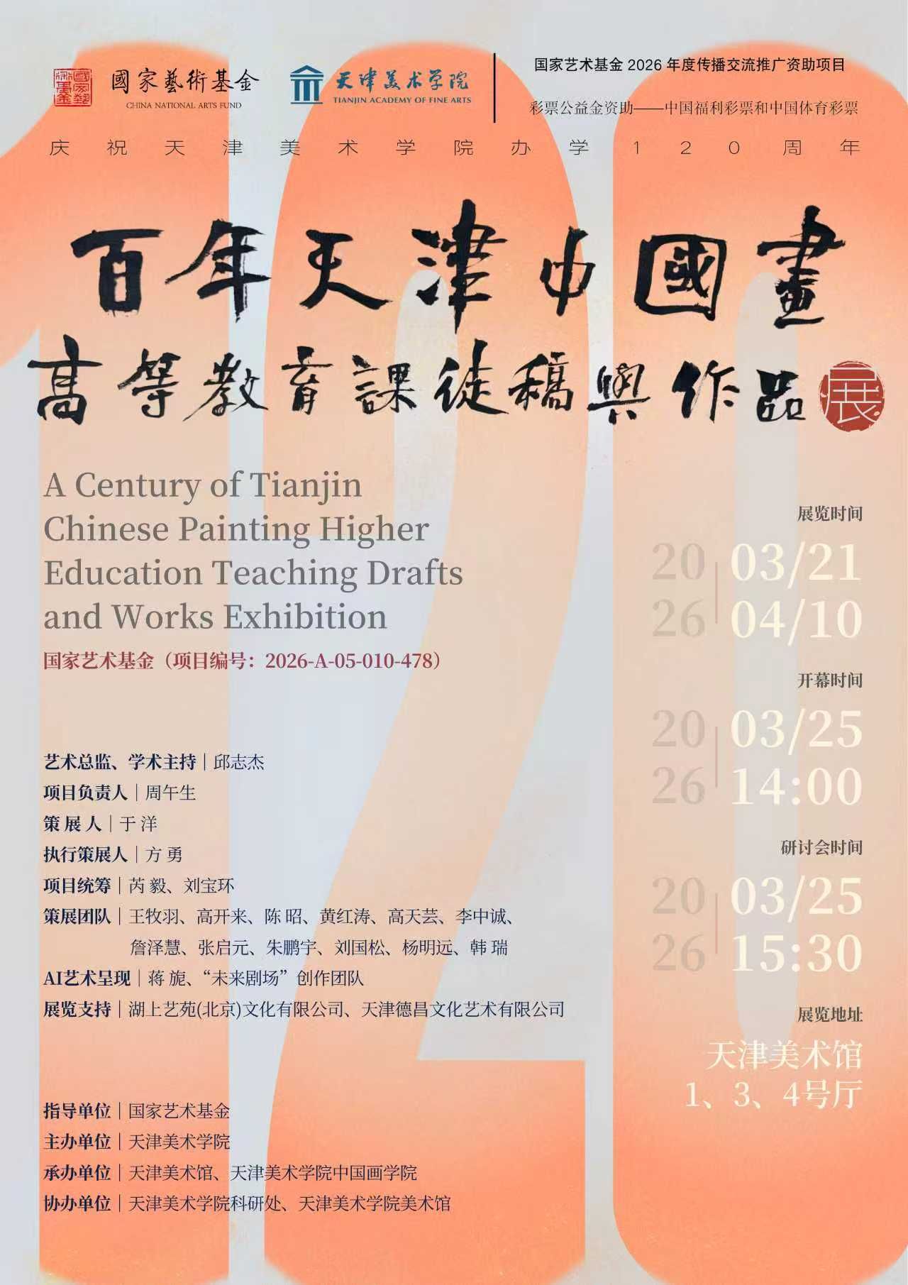 站在天津美术学院120周年办学的历史节点,依托国家艺术基金的平台支持,“百年天津中国画高等教育课徒稿与作品展”积极响应国家中国式现代化发展方向与新文科建设战略规划,聚焦传统绘画教学在数字时代的转型与创新。本次展览旨在梳理百年历史文脉,阐发美育精神内核,分“翰墨筑基”“时代新貌”和“多元共生”三个篇章,以课徒稿、创作和文献为主体,融入AI等新兴技术手段,共同呈现天津中国画高等教育的百年发展历程,探索“艺科融合”背景下中国画创作和教育的新可能。
