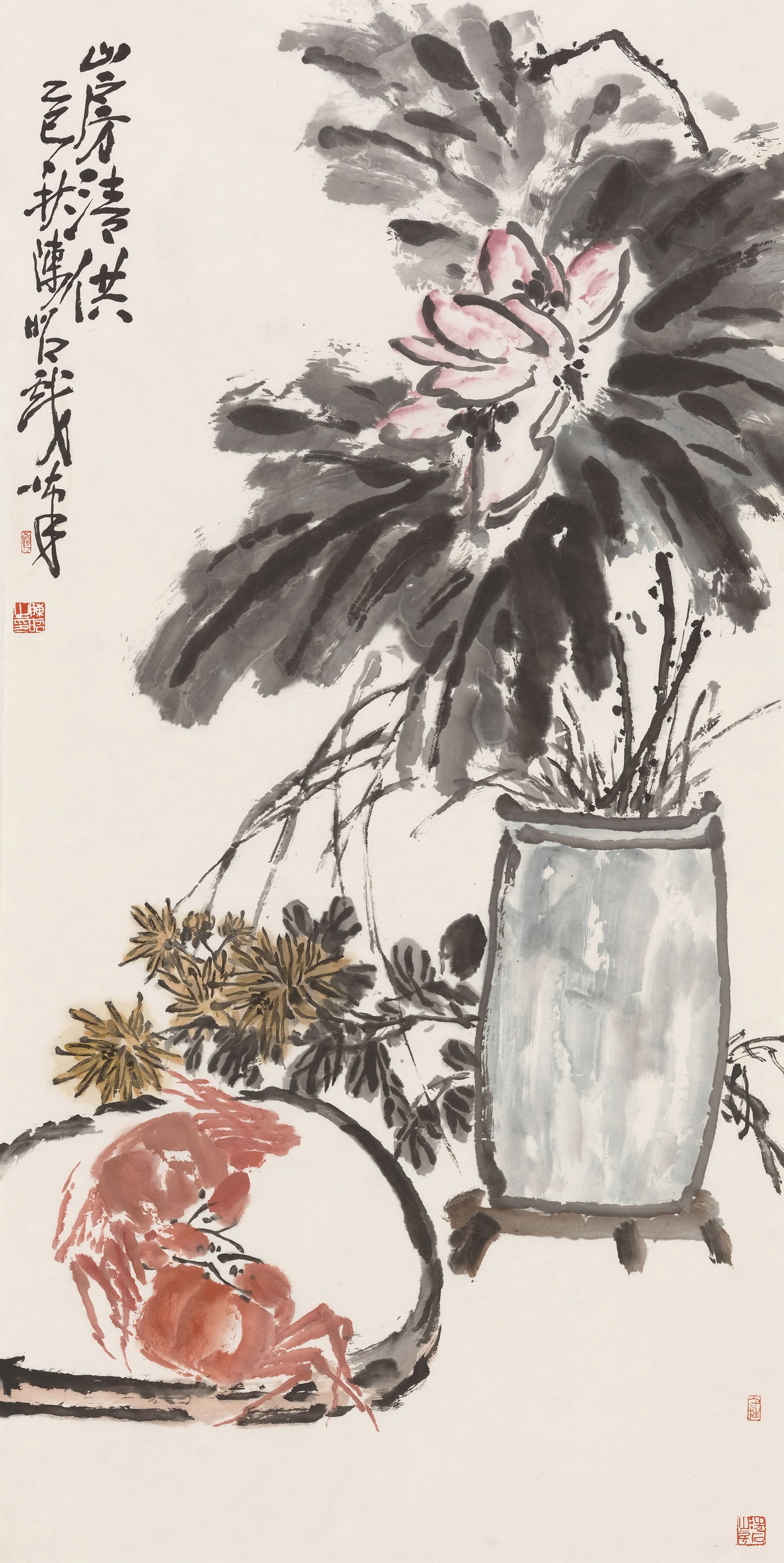 《山房清供》,138cm×69cm,纸本设色,2025年