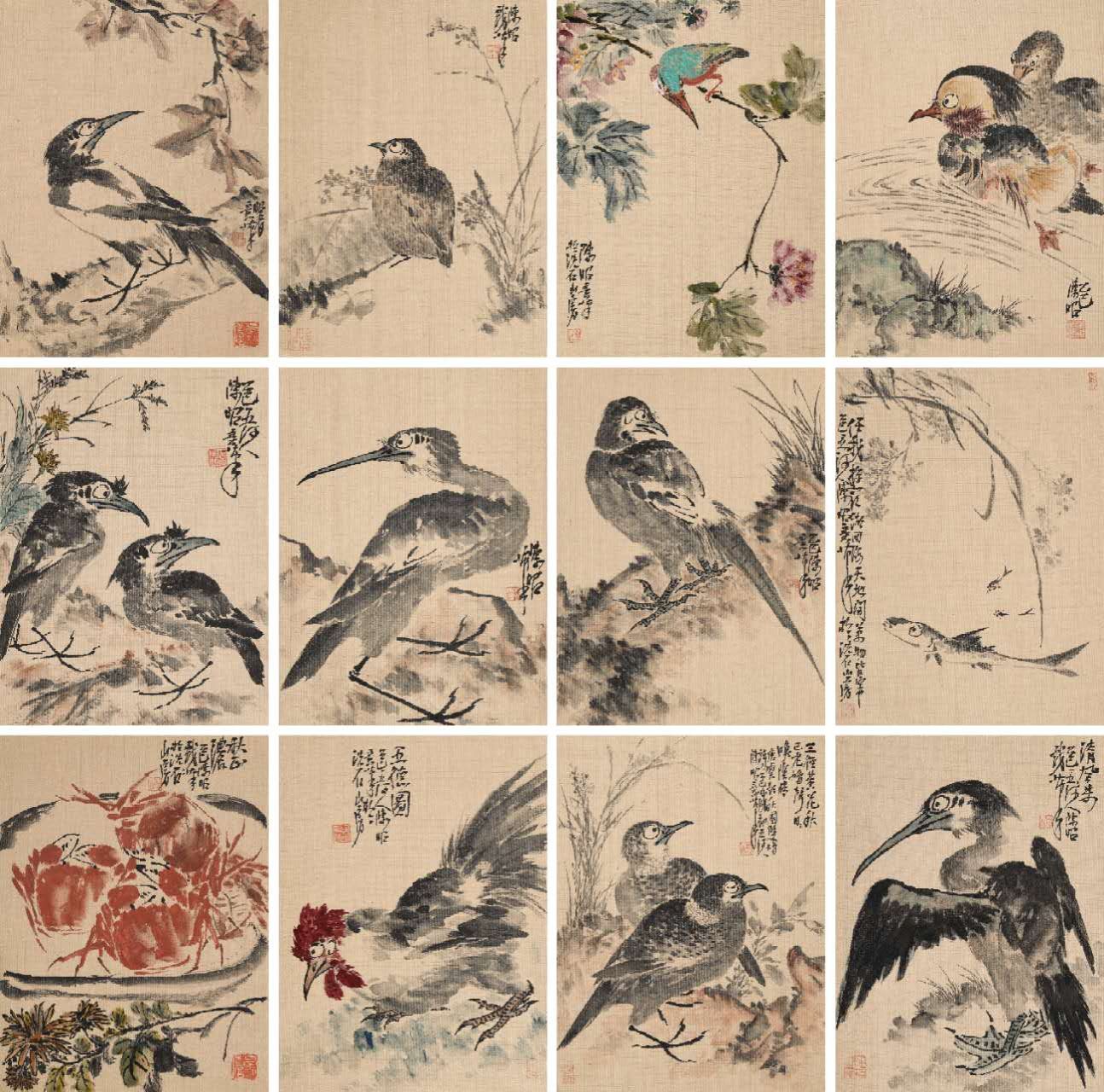 《古意花卉八条屏 》,235×53cm×8,纸本设色,2022年